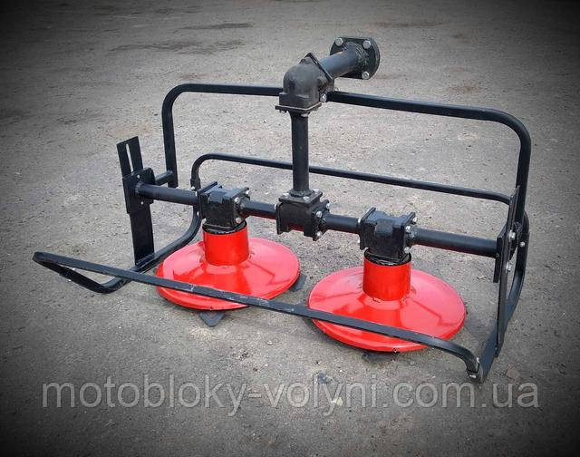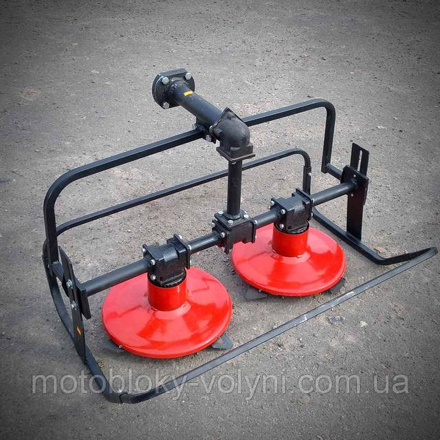 Два ротора, обладнані сталевими СЕГМЕНТНИМИ ножами які розташовані таким чином, що в роботі вони здатні захоплювати лінію до 80 см в ширину. Це дуже зручно і практично, так як така площа не дає великого навантаження на сам мотоблок і дозволяє працювати на не дуже доглянутих ділянках. Скошування трави відбувається за рахунок обертання роторів, ножі яких встановлені так, що вони перекривають один одного в процесі скошування.