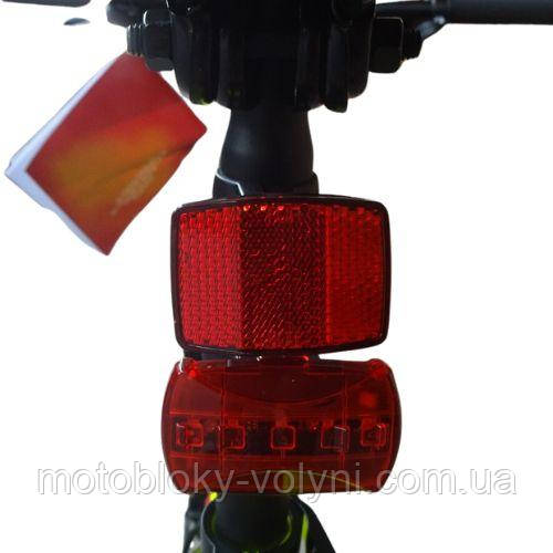 - яскраве переднє та заднє світло, що забезпечує видимість райдера у темний час доби;